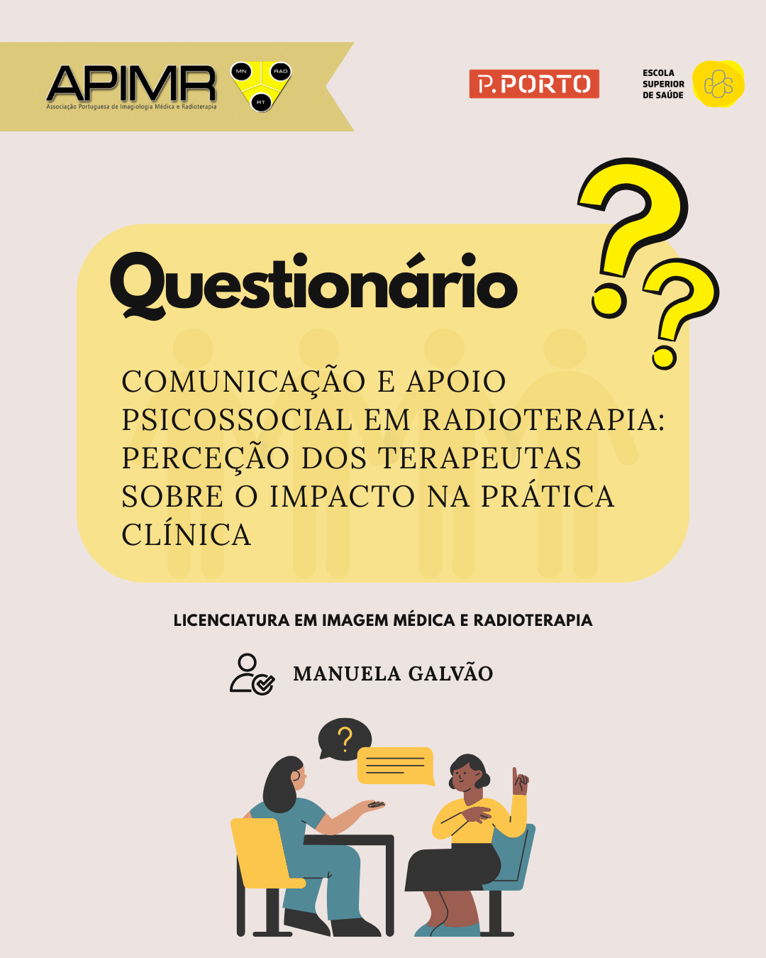 A APIMR apela à participação dos Profissionais de Radioterapia em contacto direto com o doente no estudo nacional de âmbito académico intitulado “Comunicação e Apoio Psicossocial em Radioterapia: Perceção dos Terapeutas sobre o Impacto na Prática Clínica”. Este estudo obteve o parecer favorável definitivo da Comissão de Ética da E2S – P.PORTO (número: CE017G)